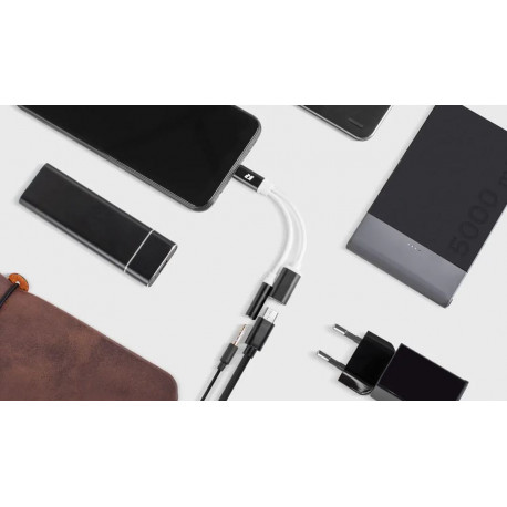 Application: an adapter that will allow, among other things, to simultaneously connect a charger and headphones to a smartphone that only has a USB type C charging port. Connectors: USB type C plug <---> 3.5mm jack socket + USB type C socket (charging). Length: 15 cm.