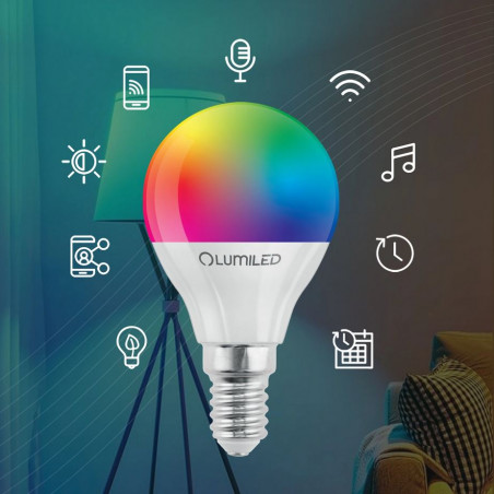 Żarówka LED E14 P40 KULKA 5W 450lm RGB CCT ściemnialna inteligentna TUYA WiFi SMART SAYO LUMILED