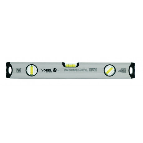 Thelevel is made of anodized aluminum profile. It has three vials indicating vertical, horizontal and 45-degree angle. The ends of the spirit level provided with special impact-absorbing bumpers.