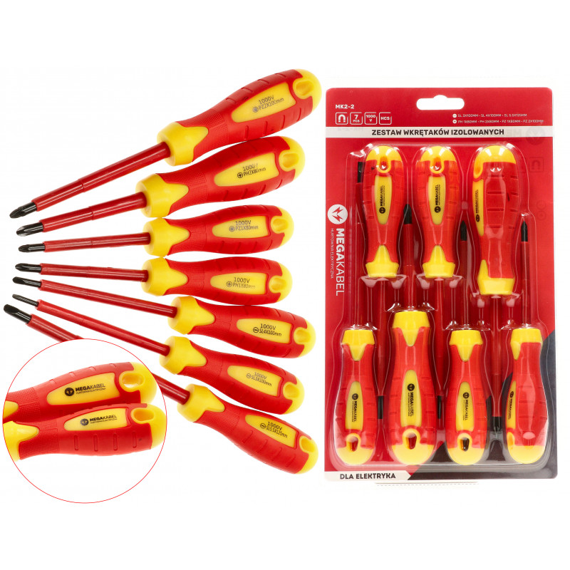 Zestaw śrubokrętów wkrętaków izolowanych DLA ELEKTRYKA 7szt TPR-1 MEGAKABEL