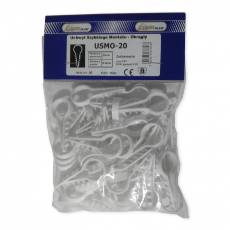 Uchwyty USMO-20 najczęściej są wykorzystywane do montowania przewodów telekomunikacyjnych oraz elektrycznych. Dzięki temu produktowi montaż przewodów jest o wiele bardziej łatwy a efekt wygląda schludnie i przejrzyście. Wykonane z polipropylenu uchwyty stosowane są zarówno w ścianach jak i na podłogach. Jest to solidny i trwały element łączeniowy używany najczęściej przez instalatorów oraz elektryków.