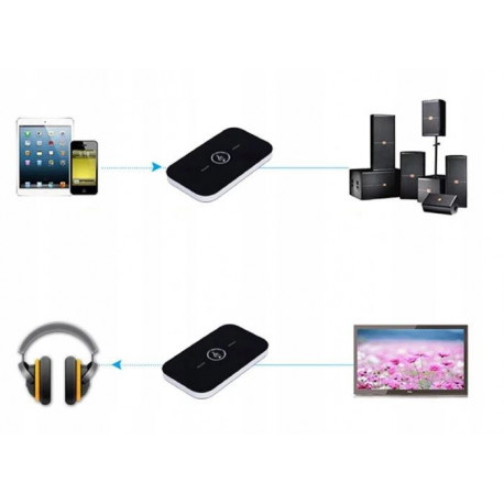 The adapter has two main working functions. The first is the transmitter function-it transmits audio signals to the devices connected to it via Mini-jack or Bloutootch. In addition to this, the adapter allows devices with a mini jack input to receive audio signals from devices with BLUETOOTH function.