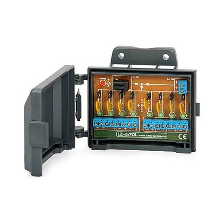 The devices can be connected in parallel to obtain 16, 24, outputs. When doing so, remember not to exceed the rated power of the power source. Splitter is a device designed to distribute the signal to eight outputs. The splitter operates in the 5-860 MHz band and is designed to transmit DC voltage through one branch to a preamplifier or possibly a mast amplifier.