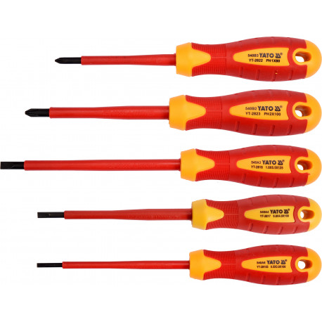 Wkrętak firmy YATO trzpień walcowy, wykonany ze stali o symbolu S2, utwardzany do około 58 HRC. Powierzchnia trzpienia satynowana, końcówka robocza utwardzana i piaskowana / wzmacnia to stabilność grota /. Rękojeść wykonana z odpowiednio dobranych tworzyw o różnych twardościach.