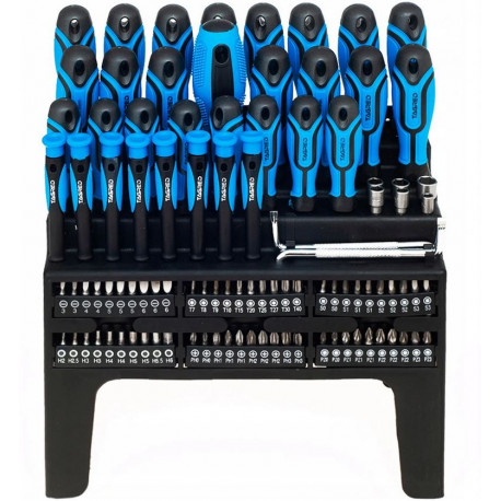 The set contains one hundred pieces of the most commonly used screwdrivers. TAGRED brand screwdrivers are a guarantee of solidity, which gives us a solid construction made of stainless steel in chrome. You may encounter the use of the names screwdriver and screwdriver. Screwdrivers have many applications in mechanical, carpentry, workshop or construction work. Its movable handle allows you to screw in and out of screws, while not straining your hand. The ergonomic handle ensures comfortable work.