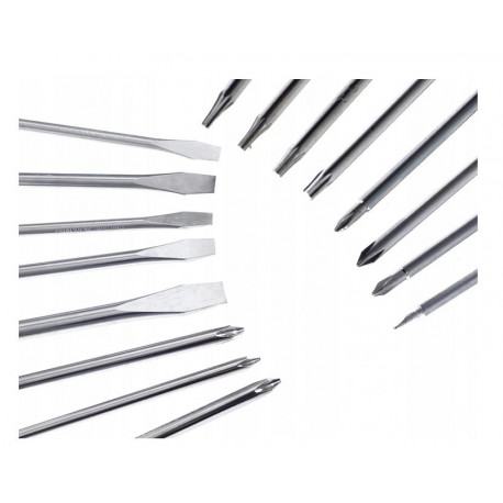 - 8 precision screwdrivers: flat:2,5x50/1,5x50 cross PH00x50/PH0x50 Type torx T6x50/T7x50/T8x50/T9x50 mm