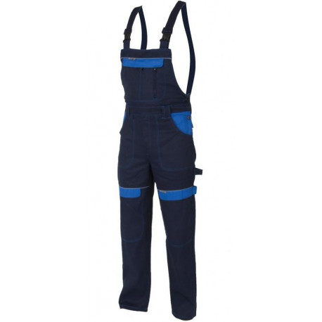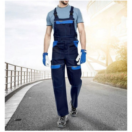 Work pants with suspenders, sewn from thick tear-resistant material meet all standards of occupational health and safety. The product is distinguished by good quality 260 g/m2 fabric and original cut. But also fashionable elements such as rounded pocket lines, double stitching in a contrasting color, reflective elements and piping, double-reinforced knee areas and multifunctional tool pockets.