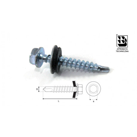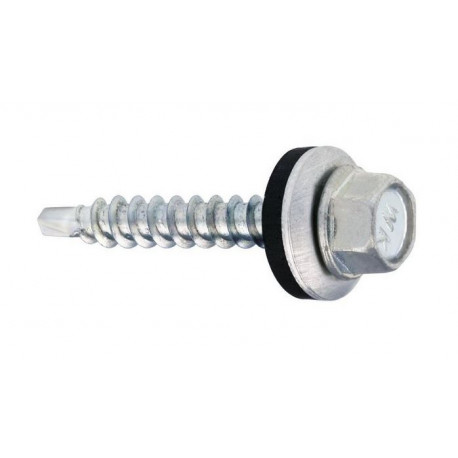 Wkręt farmerski do mocowania blach profilowanych do konstrukcji drewnianych, blachy, blachodachówek i obróbek blacharskich. Wkręt wiercący samo-gwintujący ze stali węglowej utwardzanej powierzchniowo, ocynkowany elektrolitycznie z podkładką aluminiową z EPDM.