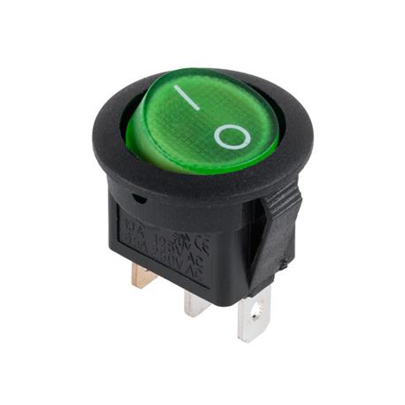 The cradle switches are designed to switch standard 230 VAC mains voltage . It is a pushbutton that uses the function of switching devices on and off with the help of an alloy cast in the shape of a cradle. On a daily basis, we use such switches to turn on and off, for example, a bedside lamp. The green OFF-ON switch can be easily installed to any device or structure being created, if the current parameters are met.