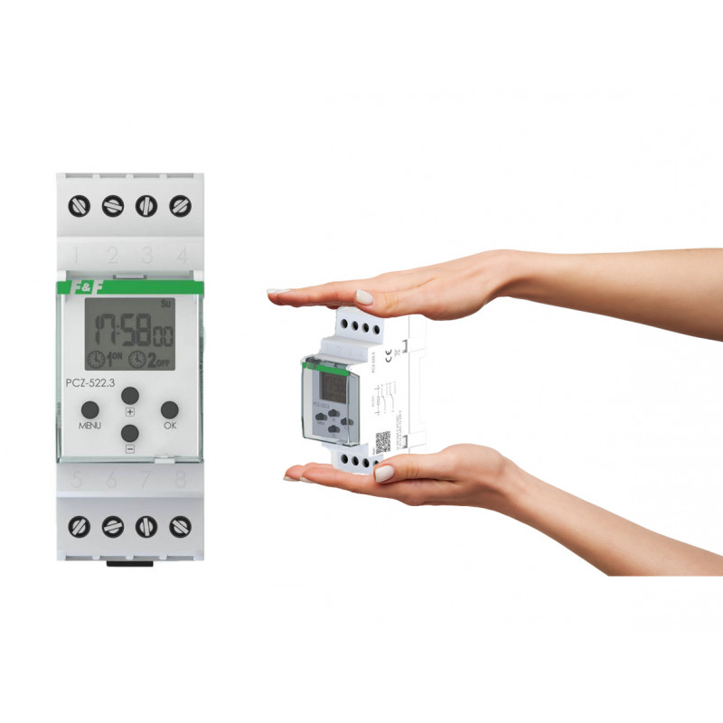 Ten produkt służy do ustawiania programów czasowych w różnych indywidualnych częściach automatyki budynkowej czy przemysłowej. Najczęściej stosowany jest w dzwonkach szkolnych. Ustawianie sygnału na daną godzinę o danej porze i w dane dni z tym modułem to pestka. Działanie jest możliwe w danych sesjach np: dobowych, tygodniowych, dni roboczych (Pn÷Pt) lub weekendowym (So, Nd). Długość impulsu wynosi maksymalnie 1s÷99min59s. Zegar sterujący jest wyposażony w dwie niezależnie programowane, przełączalne linie programowe sterujące alternatywnie podłączonym odbiornikiem. Czyli np. posiada program załączania sygnału na lekcje długie i lekcje skrócone w dane dni. Są to dwa osobne programy czasowe.