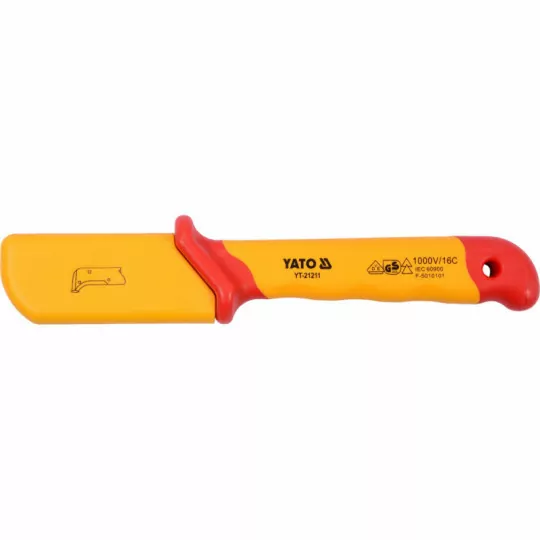 This knife is designed for cutting/cutting electrical components. The product is made of very high quality materials resistant to damage. The plastic from which the outer casing is made is hard and stable, so the knife does not slip out of your hands while working. In addition, the product is equipped with an insulating layer. This protects the user from electric shock. This product is an essential piece of equipment for any electrician. Cutting cables is an activity that electricians use every day. Ensuring comfortable and safe work is the first point we should pay attention to when gathering our equipment for work.