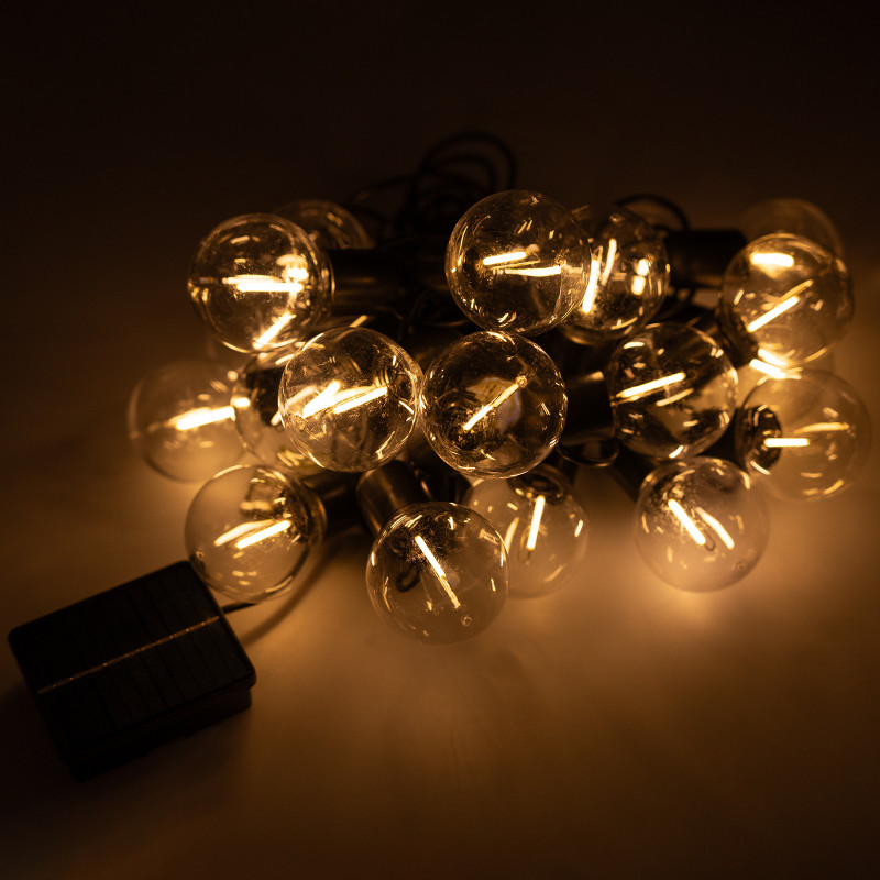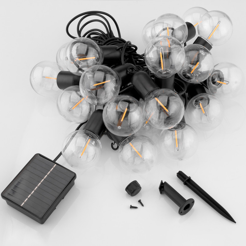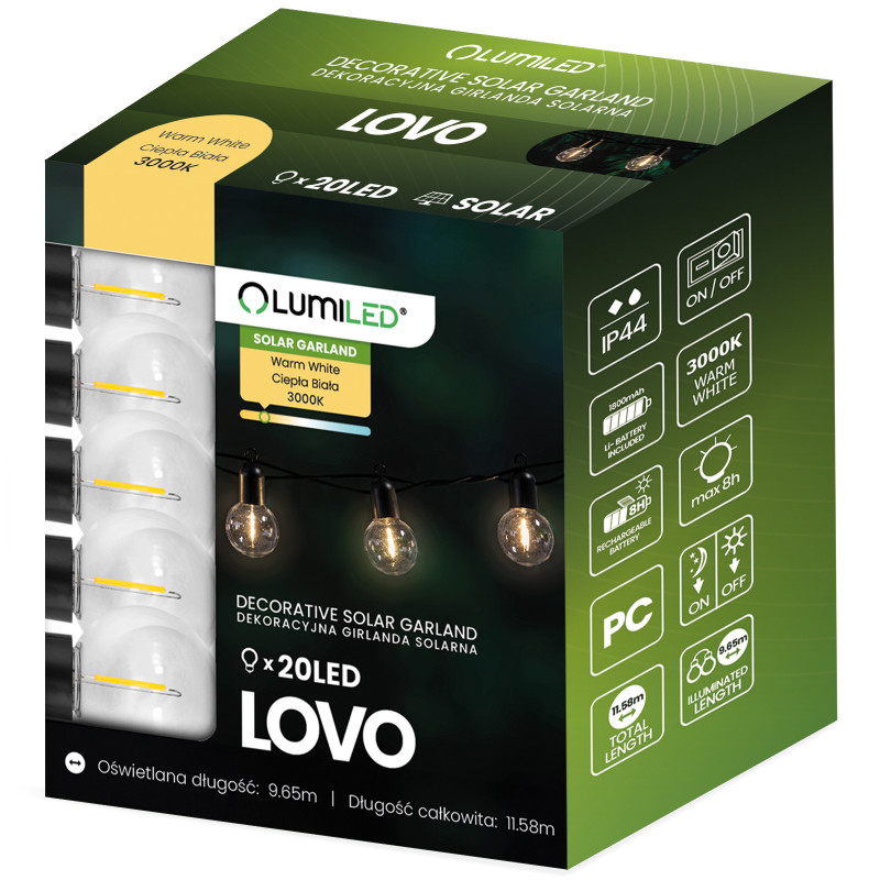 Girlanda, łańcuch solarny z dwudziestoma żarówkami w kolorze transparentnym z serii LOVO znanej i renomowanej w branży oświetleniowej marki LUMILED odmieni nastrój w Twoim ogródku, domu czy tarasie.