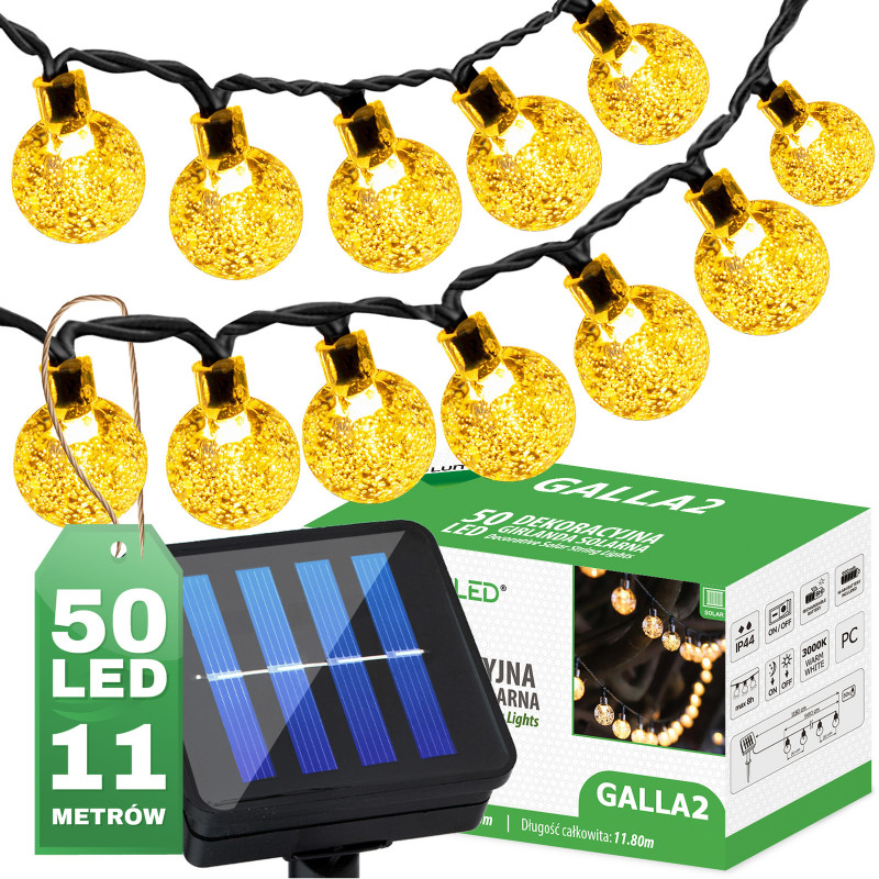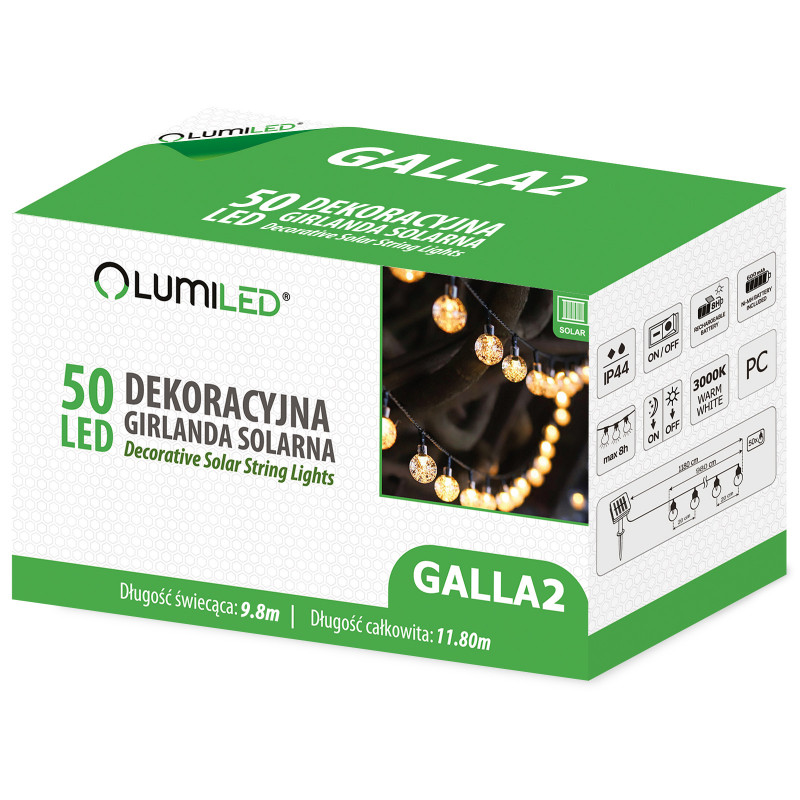 Girlanda, łańcuch solarny z pięćdziesięcioma żarówkami z serii GALLA2 znanej i renomowanej w branży oświetleniowej marki LUMILED odmieni nastrój w Twoim ogródku, domu czy tarasie.