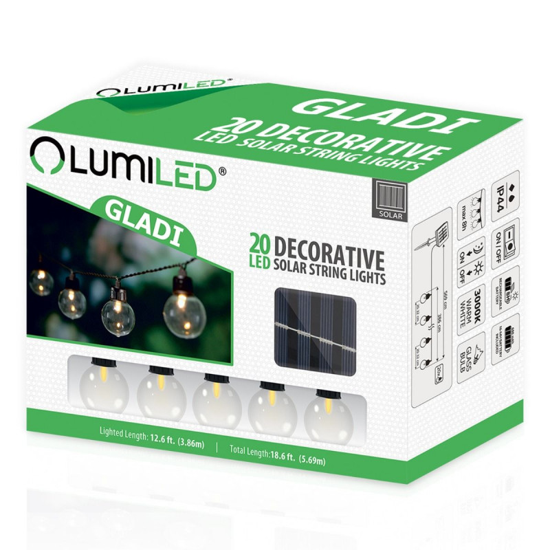 Girlanda, łańcuch solarny z z dwudziestoma kulkami w kolorze transparentnym z serii GLADI znanej i renomowanej w branży oświetleniowej marki LUMILED zmieni nasz ogródek, dom i taras w cudo.