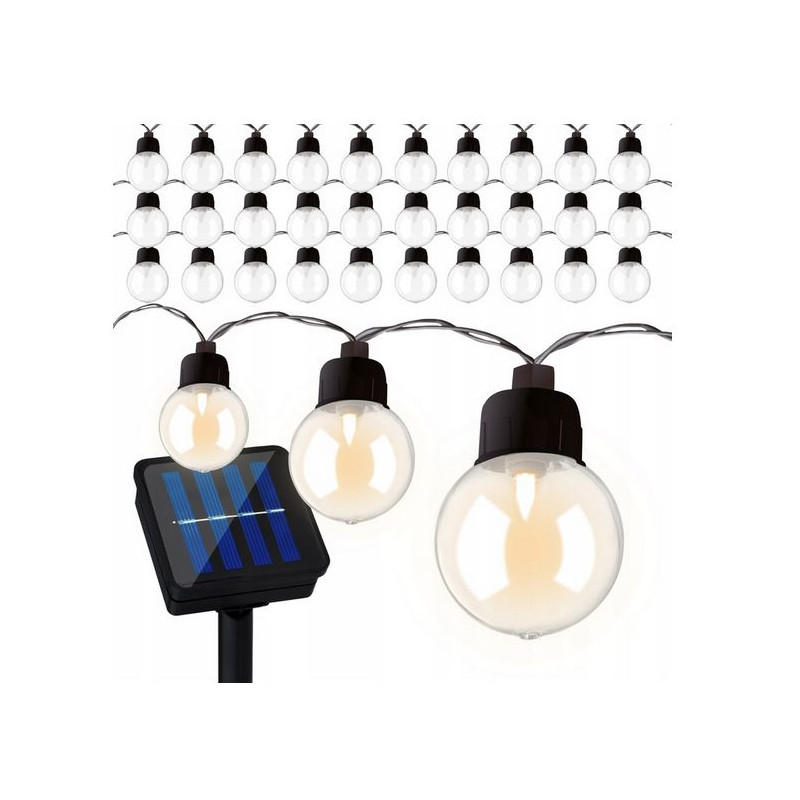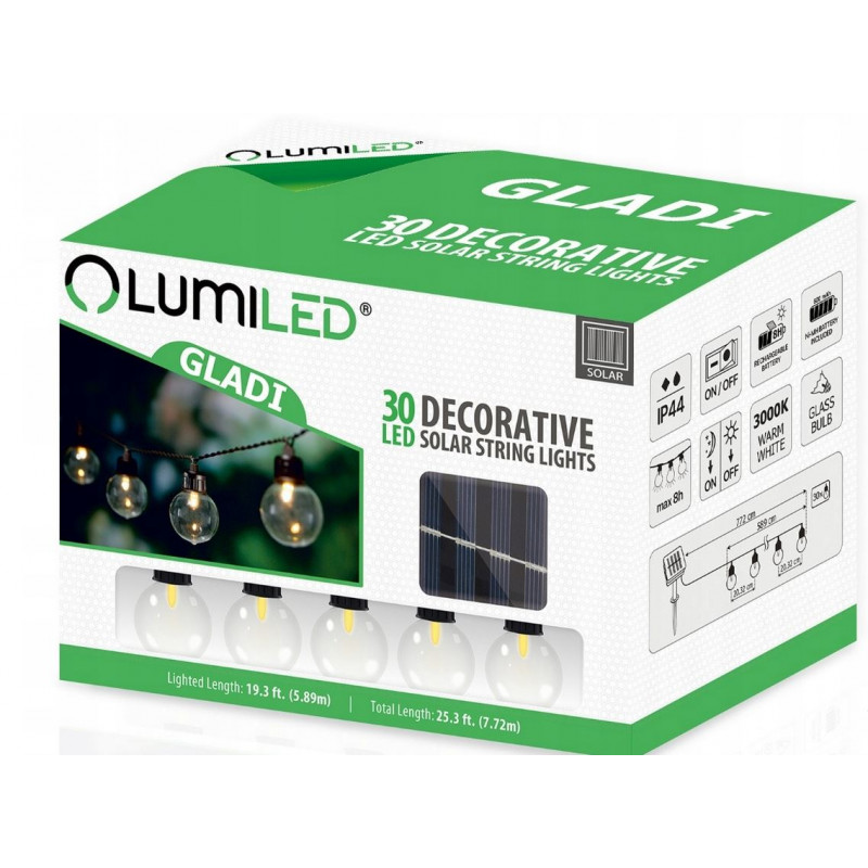 Girlanda łańcuch solarny GLADI z trzydziestoma kulkami w kolorze transparentnym marki Lumiled. Girlanda solarna GLADI to dekoracyjne, praktyczne i przyjazne oświetlenie Twojego ogrodu i środowiska.