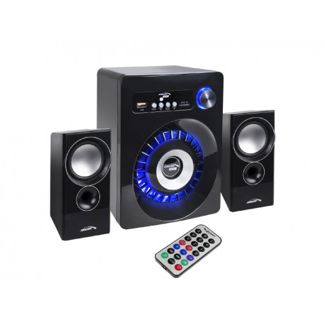 W zestawie z głośnikami znajduje się bezprzewodowy pilot sterowania, który odpowiada za regulację głośności oraz posiada przycisk wyciszania. Dzięki niemu możesz wygodnie sterować głośnikami siedząc wygodnie na kanapie bez przerywania filmu, gry i słuchania muzyki.