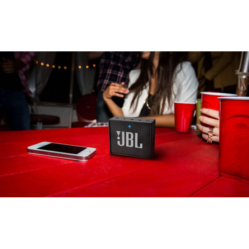 JBL GO to bezprzewodowy, przenośny głośnik, który bez trudu mieści się w niewielkiej torebce. Kompaktowe rozmiary, prosta obsługa i szybkie łączenie z siecią Bluetooth zachęcają do zabierania go w podróż i na spotkania w gronie znajomych, zwłaszcza że bateria urządzenia zapewnia do 5 godzin muzyki.