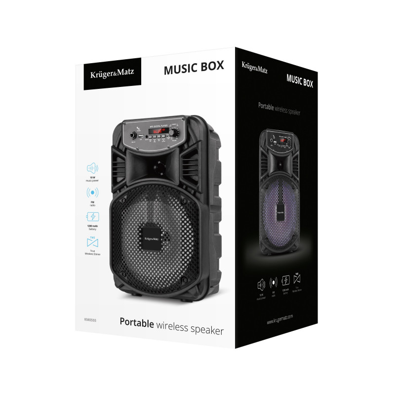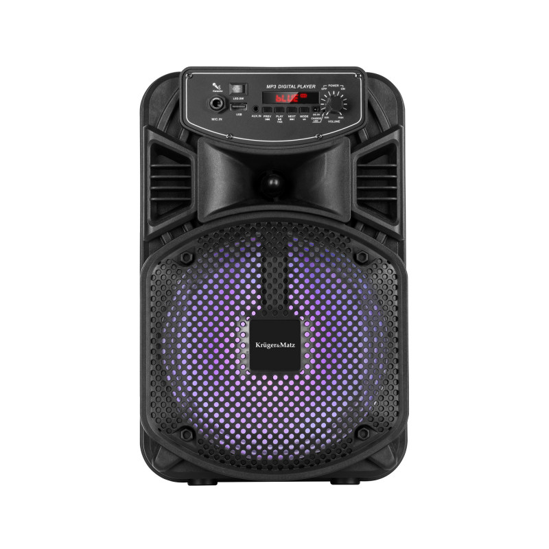 Kruger&Matz Music Box to nie tylko głośnik Bluetooth, ale kompleksowe rozwiązanie do tworzenia niesamowitej atmosfery podczas spotkań i imprez. Dzięki wysokiej jakości dźwięku, funkcjonalności karaoke oraz efektownemu podświetleniu LED, głośnik ten jest idealnym wyborem dla wszystkich miłośników muzyki i zabawy.