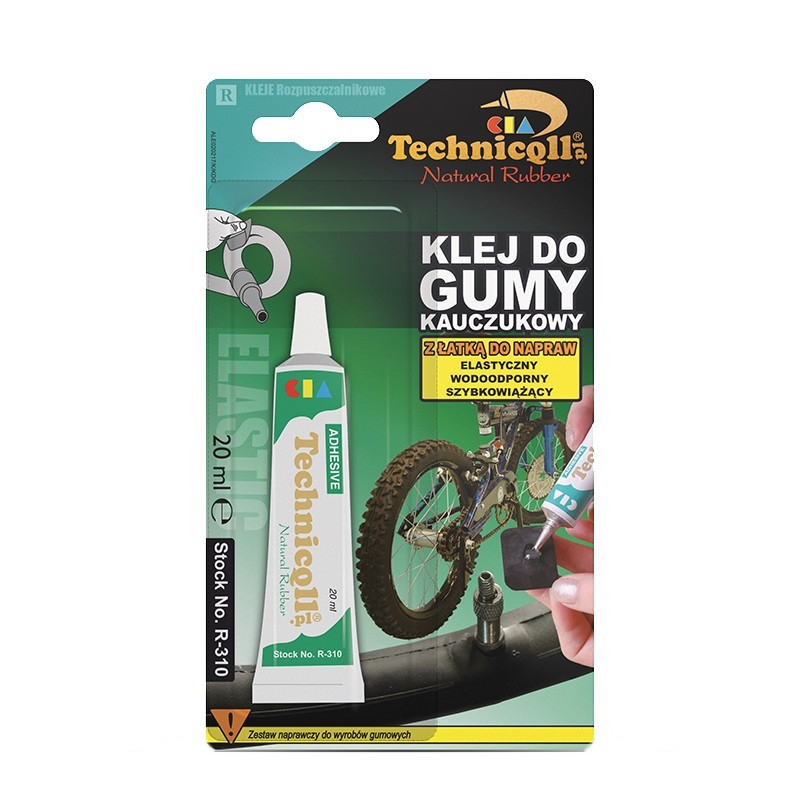 Dodatkowo, klej ten jest odporny na zmienne warunki atmosferyczne. Guma i materiały gumopochodne, które są używane na zewnątrz, często muszą wytrzymywać ekstremalne warunki pogodowe, takie jak deszcz, śnieg, mróz czy silne nasłonecznienie. Klej R-310 TECHNICQLL jest w stanie sprostać tym wyzwaniom, co sprawia, że połączenia zachowują swoją elastyczność i wytrzymałość, nawet w trudnych warunkach. Ta cecha czyni go idealnym wyborem do napraw sprzętu i akcesoriów używanych na zewnątrz, takich jak sprzęt sportowy, obuwie, czy inne przedmioty wykonane z gumy, które mogą być narażone na działanie wilgoci i skrajnych temperatur. Kolejną zaletą jest brak toluenu i cykloheksanu w składzie kleju. Te substancje są często spotykane w produktach klejących, ale mogą być szkodliwe dla zdrowia. Wyeliminowanie tych składników sprawia, że klej R-310 TECHNICQLL jest bezpieczniejszy w użyciu, co jest szczególnie ważne dla osób, które zwracają uwagę na skład chemiczny produktów, których używają.