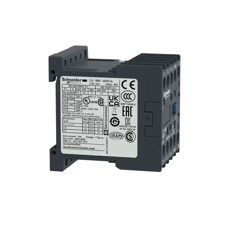 Ten stycznik jest idealny do zastosowań wymagających niezawodnej pracy w kategorii użytkowania AC-3, AC-3e oraz AC-4. W konfiguracji 3P z 1 NO stykami pomocniczymi oferuje elastyczność i możliwość łatwego dopasowania do różnorodnych aplikacji. Dzięki solidnym zaciskom śrubowym zapewnia bezpieczne i trwałe połączenie w instalacjach.