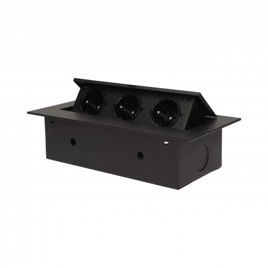 Gniazdo meblowe wpuszczane w blat z płaskim rantem 3x2P+Z czarne Orno