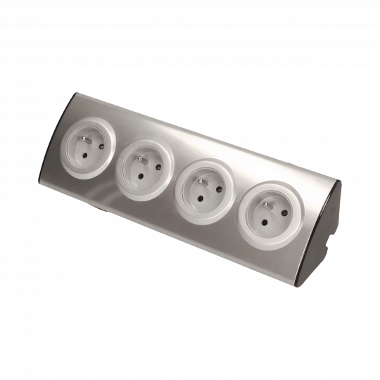 Stylowe gniazdo meblowe to panel wyposażony w cztery gniazda sieciowe z uziemieniem i przesłonami torów prądowych w obudowie ze stali nierdzewnej INOX. Idealny do montażu w kuchni i biurze, na powierzchniach płaskich i w narożnikach za pomocą pasków samoprzylepnych z rzepami lub wkrętów. Obudowa wykonana z nierdzewnego metalu. Zalecany przewód OWY 3 × 1,5 mm² (brak w zestawie).