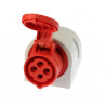Gniazdo posiada prąd znamionowy 16A oraz 4 bieguny (3P+PE), umożliwiając podłączenie standardowych maszyn i urządzeń przemysłowych. Standard EN 60309-2 i wskaźnik styku ochronnego w pozycji 6h gwarantują pełną kompatybilność z przemysłowymi instalacjami siłowymi.