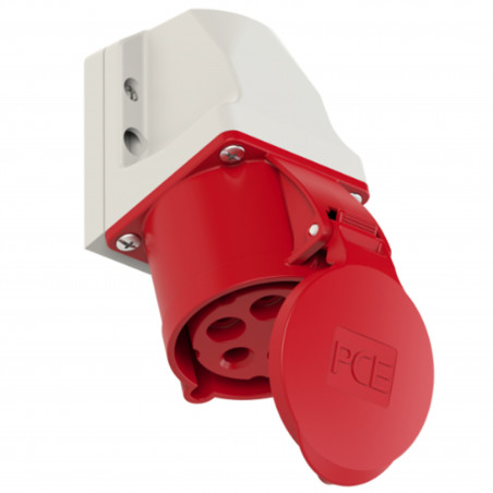 Model 125-6k PCE to gniazdo siłowe natynkowe o kompaktowej konstrukcji, przeznaczone do instalacji trójfazowych 400V. Solidna obudowa z tworzywa sztucznego i stopień ochrony IP44 zapewniają bezpieczne i niezawodne zasilanie urządzeń elektrycznych w warsztatach, halach oraz na placach budowy.