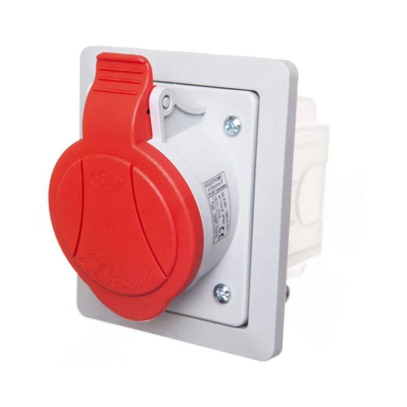 Gniazdo skośne podtynkowe z ramką 5P 32A GSP 32/5 921855 ELEKTROMET to innowacyjne rozwiązanie, które idealnie wpisuje się w potrzeby nowoczesnych instalacji elektrycznych. Montaż podtynkowy sprawia, że gniazdo doskonale integruje się z różnymi powierzchniami, co czyni je estetycznym i praktycznym wyborem zarówno w obiektach przemysłowych, jak i w domach. Jego prąd znamionowy wynoszący 32 A oraz liczba biegunów 5 umożliwiają podłączanie urządzeń wymagających dużych mocy, co jest istotne w przypadku maszyn oraz sprzętu elektrycznego.