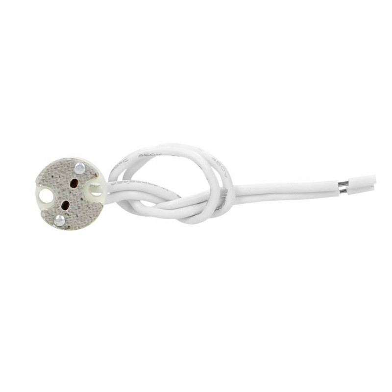 Gniazdo przyłączeniowe MR16 LH/GX5.3-12 VIRONE to ceramiczna oprawka przeznaczona do montażu żarówek LED lub halogenowych, zgodnych ze standardem MR16. Produkt ten charakteryzuje się solidną konstrukcją i funkcjonalnością, co czyni go idealnym wyborem do różnorodnych instalacji oświetleniowych. Ceramika jest materiałem odpornym na wysokie temperatury, co jest szczególnie ważne w przypadku żarówek halogenowych, które podczas pracy generują dużo ciepła. Dzięki temu oprawka zapewnia długotrwałe i bezpieczne użytkowanie, minimalizując ryzyko uszkodzeń spowodowanych przez wysoką temperaturę. To cecha, która wyróżnia ten produkt, szczególnie w porównaniu z oprawkami wykonanymi z mniej odpornych materiałów.