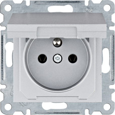 Berker kwadrat gnizdo pojedyńcze z klpką z uziemieniem srebre Hager