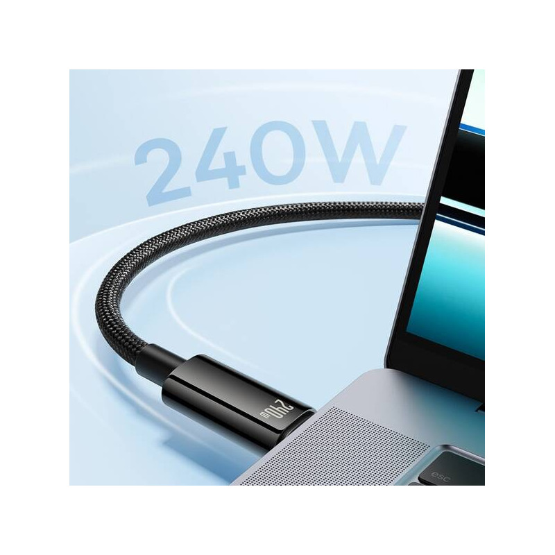Kabel Baseus Tungsten Gold Fast Charging to rozwiązanie stworzone z myślą o najbardziej wymagających użytkownikach. Obsługuje standard Power Delivery 3.1 oraz technologie szybkiego ładowania Samsung AFC, Huawei FCP i Quick Charge 2.0–4.0+. Dzięki imponującej mocy 240W z łatwością naładuje nie tylko smartfony i tablety, ale również laptopy wymagające dużej mocy zasilania.