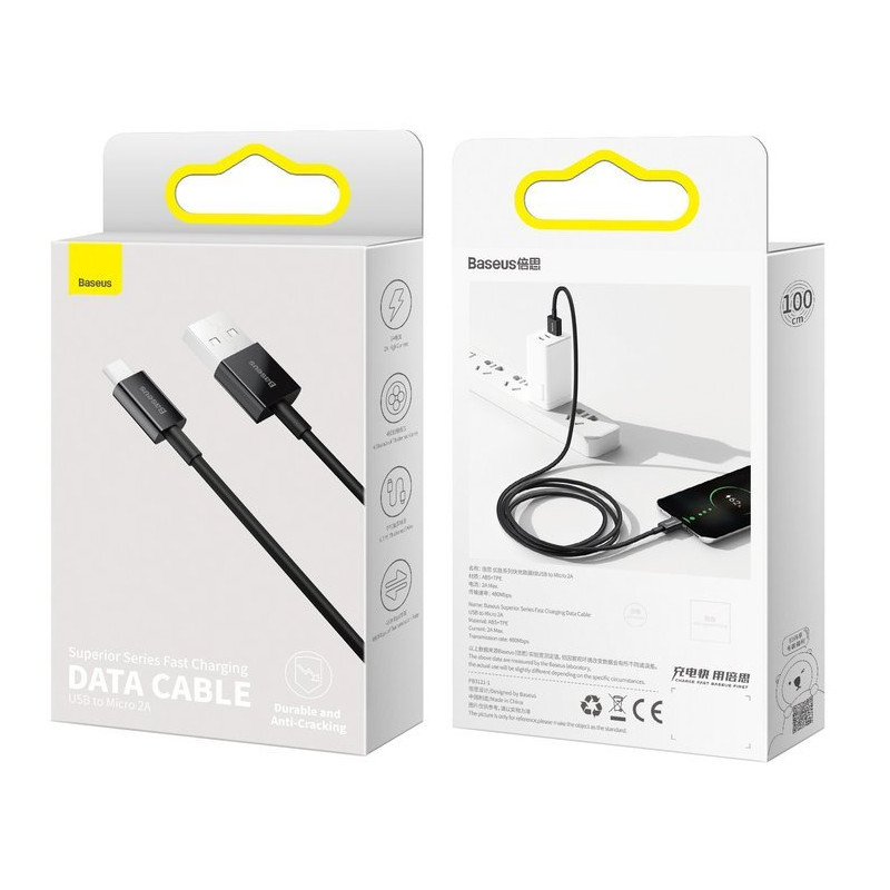 Kabel BASEUS z serii Superior to niezawodne akcesorium z końcówką Micro USB, idealne do codziennego ładowania urządzeń. Obsługuje natężenie do 2A, co przekłada się na szybkie i stabilne ładowanie. Dodatkowo zapewnia transfer danych do 480 Mbps, umożliwiając szybką synchronizację plików.