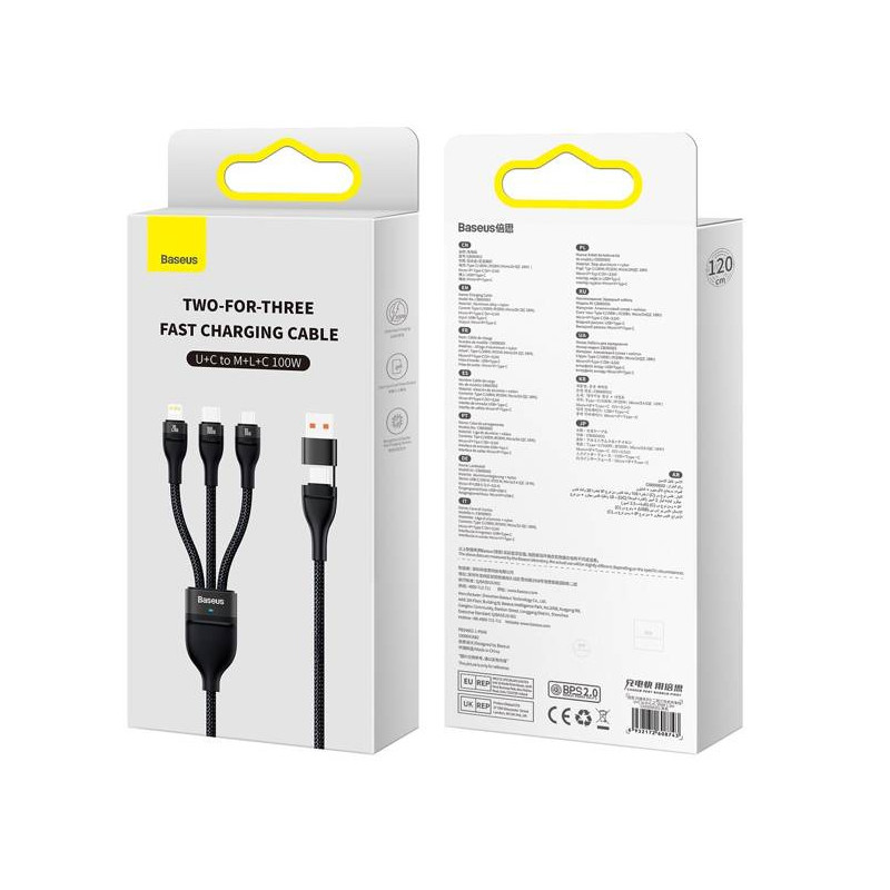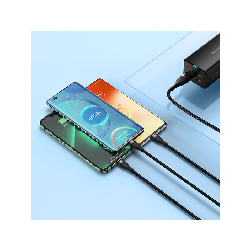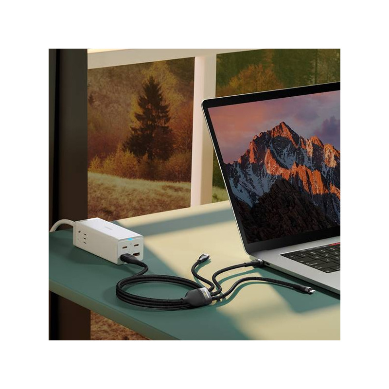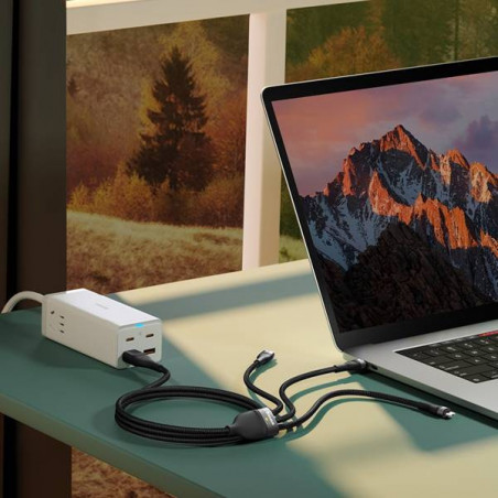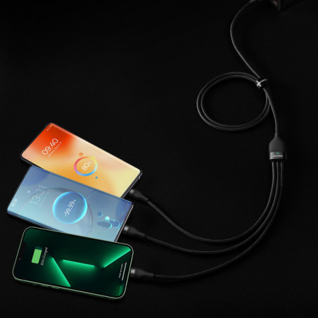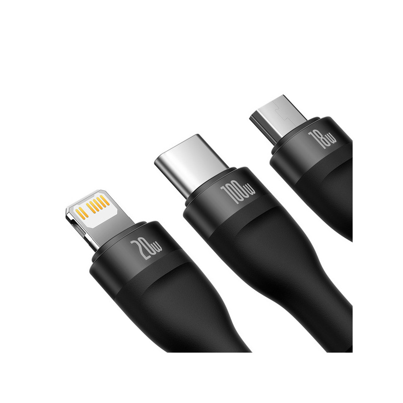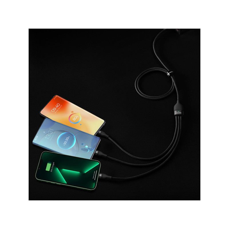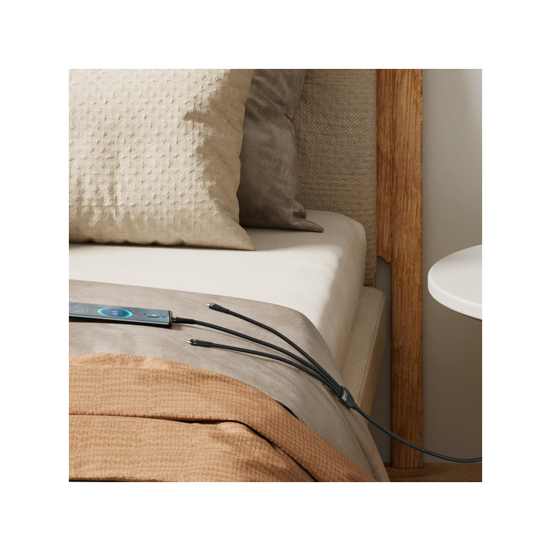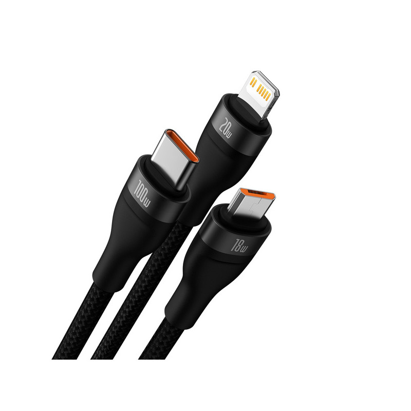 Kabel obsługuje szybkie ładowanie PD do 100W, co pozwala w ekspresowym tempie zasilić laptopy, tablety i smartfony. Port Lightning zapewnia ładowanie 20W, a Micro USB do 18W. Technologia Baseus Power Split (BPS) inteligentnie rozdziela moc między urządzenia, zapewniając optymalną prędkość ładowania i bezpieczeństwo.