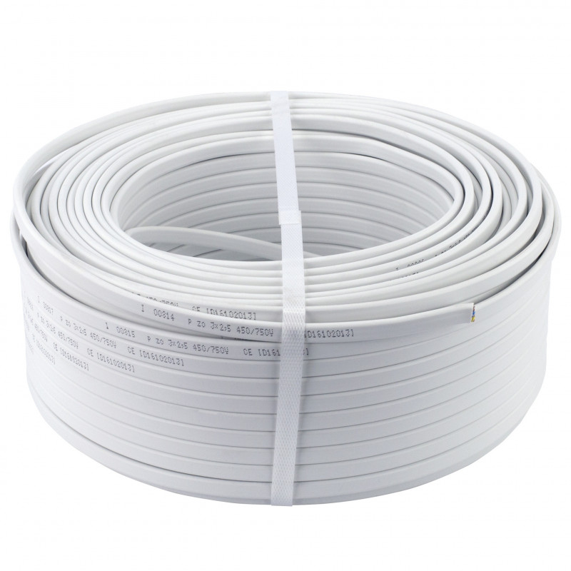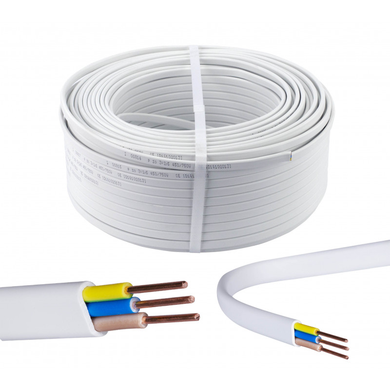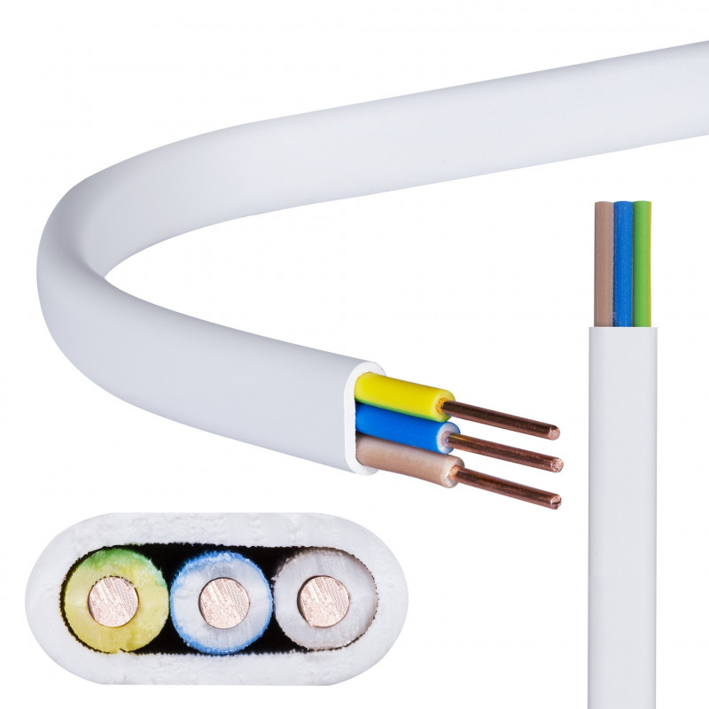 Przewody o żyłach miedzianych, jednodrutowych o izolacji i powłoce z polwinitu, płaskie, ogólnego przeznaczenia do układania na stałe.