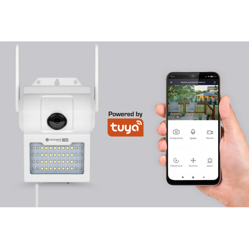 Bezprzewodowa kamera Kruger&Matz Connect C80 to doskonałe doposażenie Twojego sprzętu smart home. Dzięki łączności Wi-Fi urządzenie może być sterowane aplikacją TuyaSmart, dlatego, niezależnie gdzie jesteś, możesz w każdym momencie sprawdzić co dzieje się na Twoim podwórku.