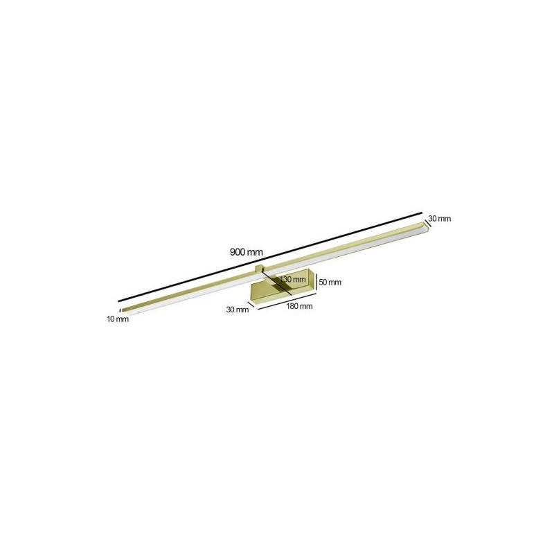 Wysokiej jakości nowoczesna oprawa dekoracyjna marki LUMILED. Produkt ten wykorzystywany jest najczęściej do oświetlania obrazów lub luster, z pewnością można jednak znaleźć dla niego szereg innych zastosowań. Solidna konstrukcja, całość została wykonana ze stali nierdzewnej w kolorze złotym. Jako źródło światła w oprawie zastosowano niezawodne diody LED.