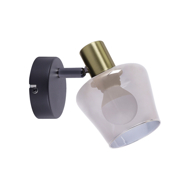 Konstrukcja wykonana z blachy stalowej oraz szkła gwarantuje trwałość i estetyczny wygląd przez długi czas. Złote akcenty pięknie odbijają światło, tworząc przytulną atmosferę w pomieszczeniu. Kompaktowe wymiary 160 × 140 × 100 mm pozwalają na montaż nawet w mniejszych przestrzeniach.