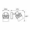 Model wyposażony jest w oprawę E14 o maksymalnej mocy 40 W, przystosowaną do energooszczędnych źródeł LED. Możliwość regulacji kierunku świecenia pozwala dopasować strumień światła do indywidualnych potrzeb – jako oświetlenie punktowe, przy łóżku czy w strefie wypoczynkowej. Wymienne źródło światła daje swobodę wyboru barwy i mocy.