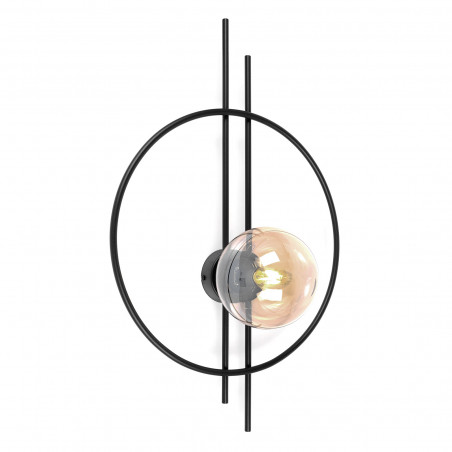 Lampa ścienna CORSA K-5346 to doskonałe połączenie nowoczesnego wzornictwa z ponadczasową elegancją. Jej czarna, metalowa konstrukcja oraz bursztynowy, szklany klosz przyciągają wzrok i nadają wnętrzu unikalnego charakteru. Geometryczny okrąg tworzy dekoracyjną ramę, która podkreśla design i wyróżnia lampę na tle innych modeli.