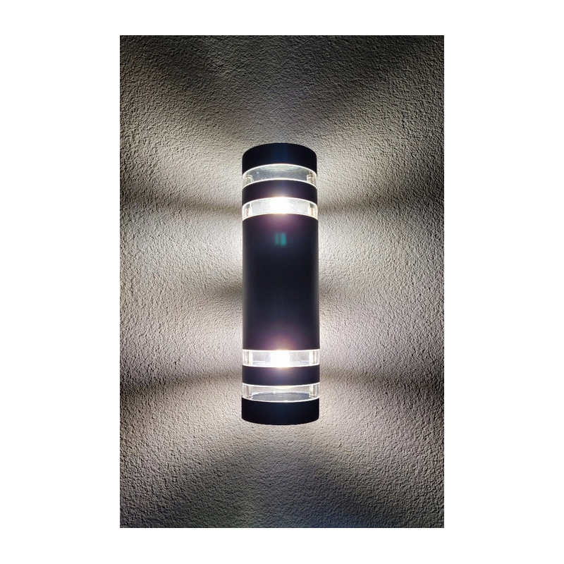 Dwa gniazda E27 umożliwiają zamontowanie dwóch żarówek, co pozwala na odpowiednie oświetlenie zarówno na górę, jak i na dół, co jest przydatne do podświetlania wejść, tarasów czy innych obszarów zewnętrznych.