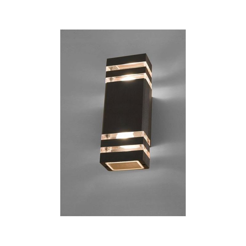 Lampa RIO II jest to nowoczesna, solidna propozycja w tej kategorii opraw oświetleniowych zewnętrznych. Bardzo ważna zaletą produktu jest wytrzymała obudowa wykonana z aluminium w kolorze czarny-mat odporna na uszkodzenia o stopniu hermetyczności IP54 - odporna na wilgoć. Produkt wyposażono w 2 gniazda E27 (duży gwint) max 2x40W co zapewnia mocny strumień światła, doskonale nadający się do oświetlenia elewacji czy tarasu.