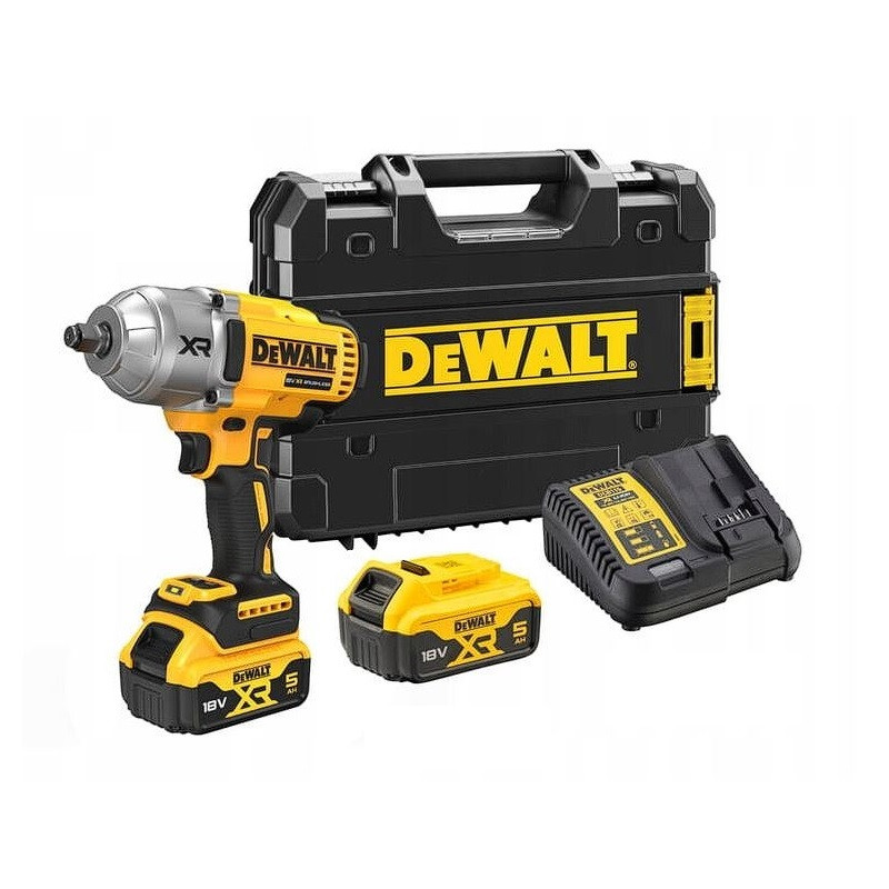Klucz udarowy 1/2" 18V 1355Nm 2x5Ah TSTAK DCF900P2T-QW DEWALT to zaawansowane narzędzie, które łączy w sobie najwyższą moc, innowacyjną technologię i wygodę użytkowania. Ten model klucza udarowego DEWALT jest dedykowany dla profesjonalistów, którzy potrzebują niezawodnego sprzętu do najcięższych zadań w różnych warunkach roboczych. Dzięki maksymalnemu momentowi obrotowemu wynoszącemu 1356 Nm, klucz ten oferuje wyjątkową siłę dokręcania, co czyni go idealnym narzędziem do pracy z dużymi średnicami śrub. Jego wysoka moc zrywająca wynosząca 1898 Nm umożliwia łatwe odkręcanie nawet najbardziej dokręconych śrub, co jest niezwykle istotne w przypadku zastosowań przemysłowych oraz budowlanych, gdzie odporność na ogromne obciążenia jest kluczowa. Jednym z wyróżniających się elementów tego modelu jest przełącznik z 4 trybami pracy, w tym specjalny tryb KLUCZ PRECYZYJNY. Tryb ten zapewnia dokładną kontrolę użytkowania poprzez utrzymanie stałej częstotliwości udaru, co jest szczególnie ważne w przypadku precyzyjnych operacji. Dzięki tej funkcji użytkownik ma pełną kontrolę nad siłą aplikowaną do śrub i innych mocowań, co znacząco zwiększa precyzję pracy. Zmienny wyzwalacz pozwala na pełną kontrolę nad każdą operacją, umożliwiając dostosowanie siły do aktualnych potrzeb.