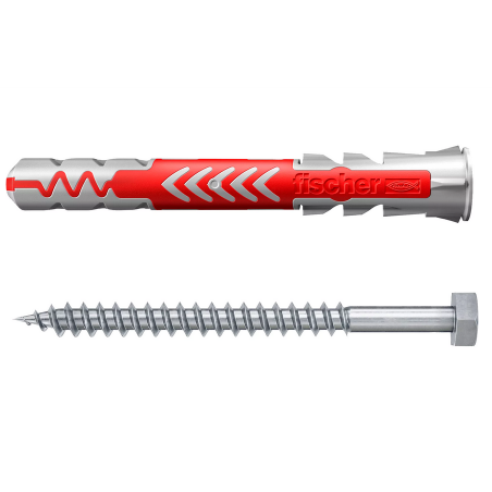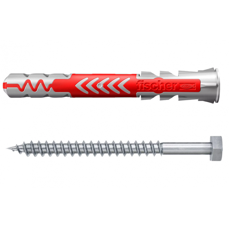 FISCHER DUOPOWER 10x80 S to nowoczesny kołek rozporowy z dwoma komponentami: szary nylon i czerwone skrzydełka rozporowe, zapewniający wysoką nośność i automatyczne dopasowanie do rodzaju podłoża. Kołek może pracować w trzech trybach: rozkładanie, rozpieranie lub zwijanie (zapętlanie), w zależności od twardości i struktury materiału.