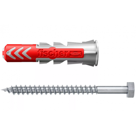 FISCHER DUOPOWER 12x60 S to nowoczesny kołek rozporowy wykonany w technologii dwukomponentowej, zapewniającej wysoką skuteczność mocowania w różnych podłożach. Połączenie szarego nylonu z czerwonymi skrzydełkami rozporowymi umożliwia automatyczne dopasowanie sposobu działania do materiału bazowego. Kołek może pracować w trybie rozkładania, rozpierania lub zwijania (zapętlania).