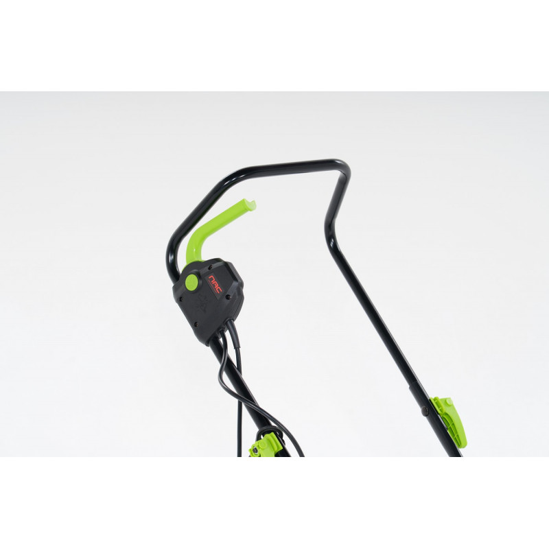 Dzięki specjalnej geometrii obudowy, w której koła nie wystają poza jej obrys, kosiarką tą można także bez problemu kosić trawę wzdłuż murów, płotów czy ścian, uzyskując doskonały wynik aż po sam brzeg, bez konieczności dodatkowego podkaszania. Praca bez wysiłku oraz łatwa obsługa dzięki ergonomicznie wyprofilowanemu uchwytowi. Rękojeść, za pomocą kilkustopniowej regulacji, można dopasować do wzrostu każdego użytkownika, przez co koszenie jest niezwykle wygodne.