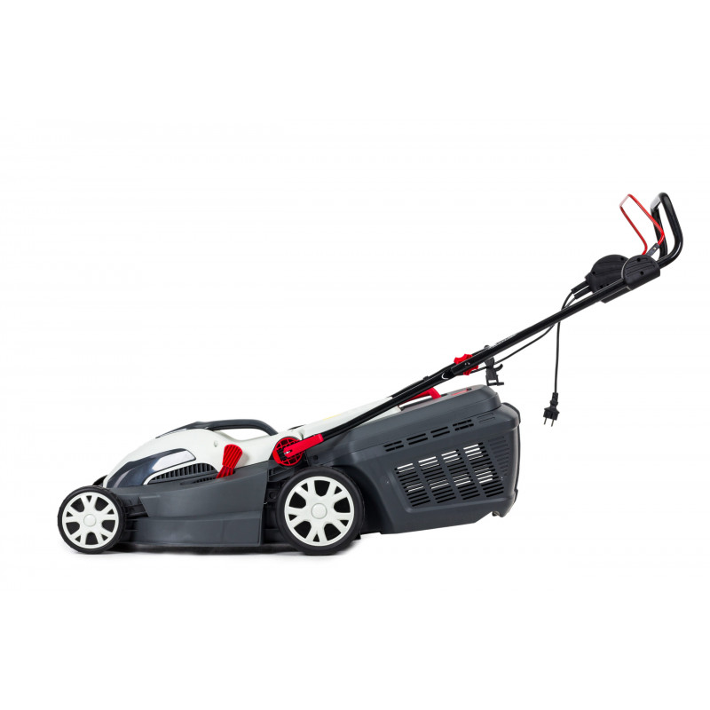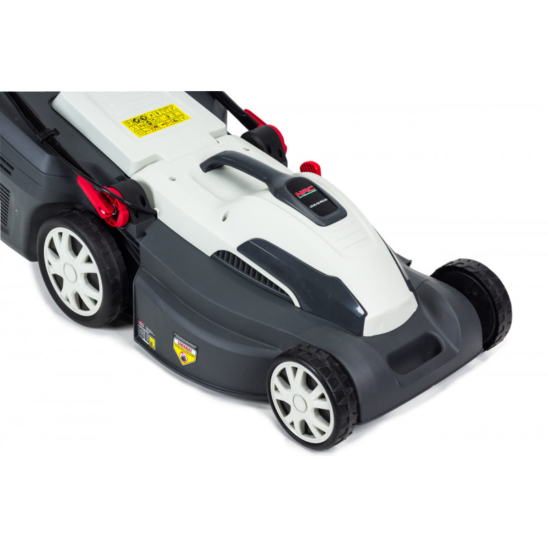 Kosiarka elektryczna NAC LE18-42-PB-KC o szerokości koszenia 42 cm, wyposażona jest w silnik o mocy 1800 W z zabezpieczeniem termicznym, które chroni silnik kosiarki przed przegrzaniem.