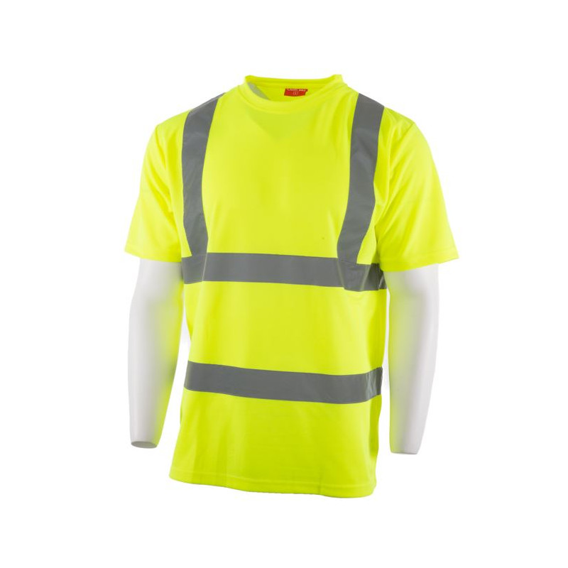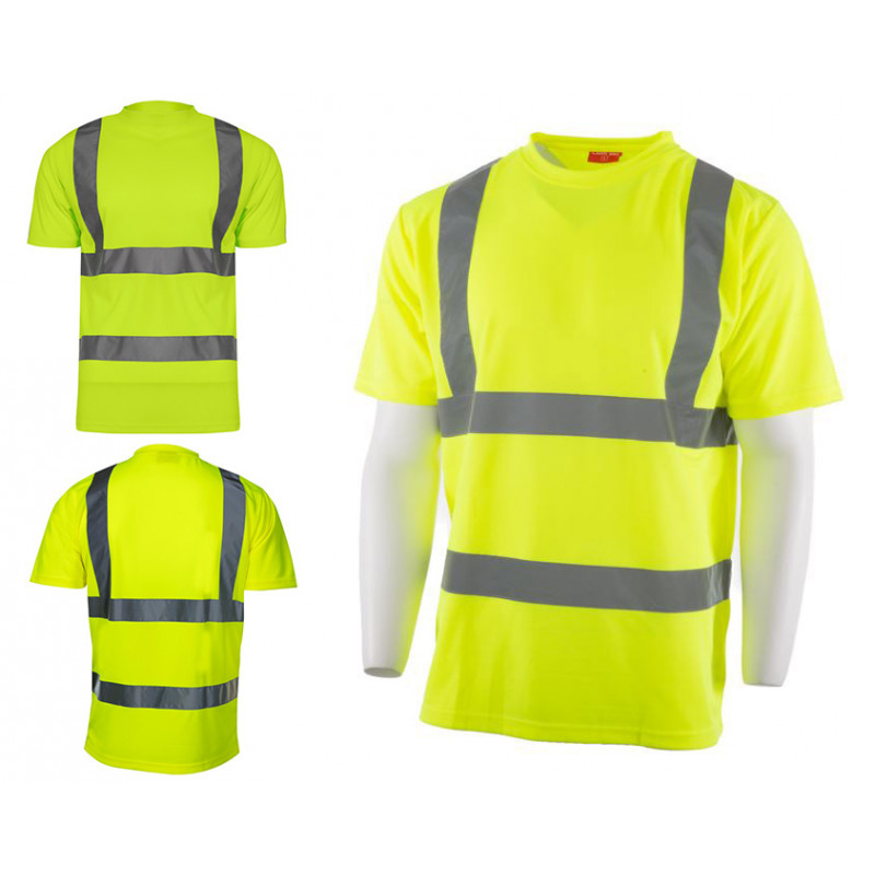 T-shirt wykonany jest z wysokiej jakości materiału, który zapewnia wygodę i trwałość użytkowania. Kolor żółty z odblaskowymi elementami sprawiają, że osoba ją nosząca jest bardziej widoczna w ciemności i w trudnych warunkach atmosferycznych.