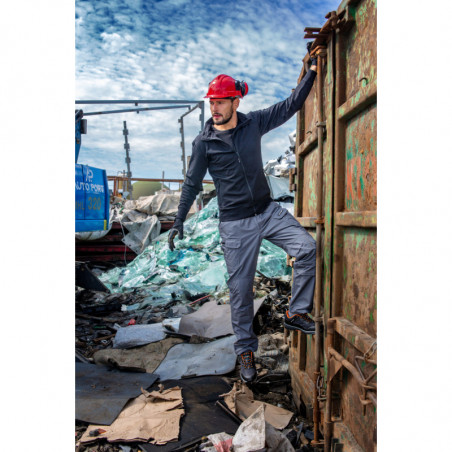 Wiatroszczelne suwaki skutecznie chronią przed przewiewami, a grube ściągacze na mankietach i u dołu bluzy zapobiegają podwijaniu materiału. Bluza pozbawiona kaptura sprawia, że idealnie sprawdza się pod kurtką lub kamizelką roboczą. Całość charakteryzuje się nowoczesnym krojem i estetycznym wyglądem.