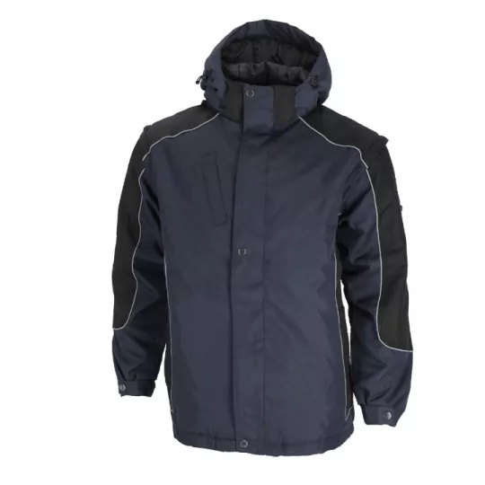 Zadaniem kurtki wykonanej z wodoodpornego materiału poliesterowego 600D Oxford jest ochrona przed wiatrem i deszczem. Wzmocniona struktura przedłuży żywotność kurtki, ze względu na odporność na uszkodzenia mechaniczne i przetarcia. Jest ocieplana, wykończona pikowaną, poliestrową podszewką. Kurtka posiada odpinany kaptur i odpinane rękawy, które zwiększają opcje jej zastosowania. Wykończona jest odblaskami, które podnoszą bezpieczeństwo w pracy.